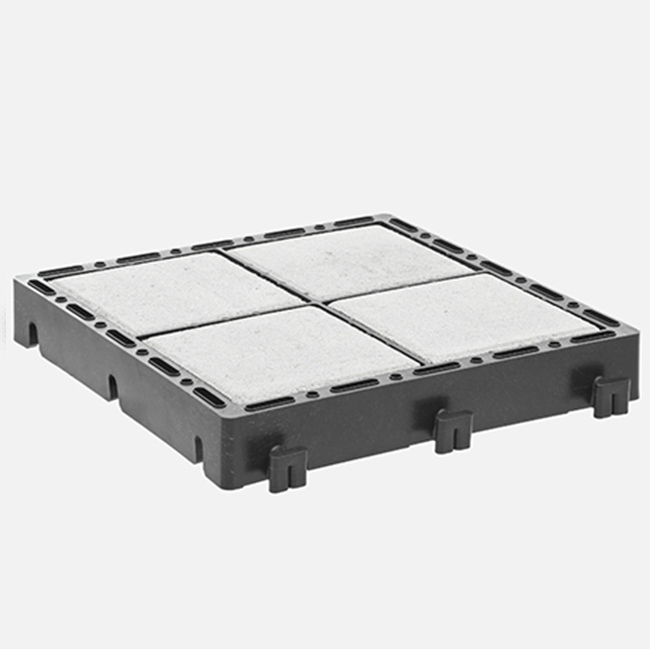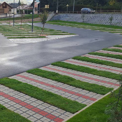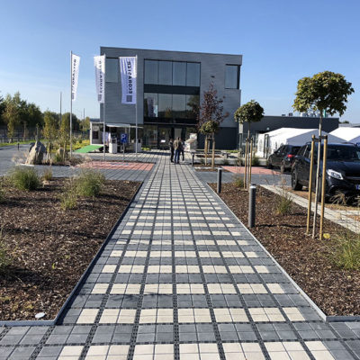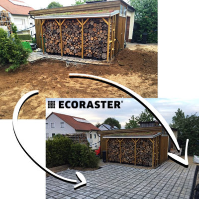 ECORASTER Bloxx funguje ako nosný rám pre príslušné betónové dlaždice a má integrovanú odtokovú drážku, ktorá sa nemôže pchať. Postará sa teda okrem vysokého pokrytia tiež o konštantné odtokové hodnoty a umožňuje vysoké presakovanie dažďovej vody. Vďaka rôznofarebným kameňom, sa dajú plochy upraviť veľmi kreatívne.