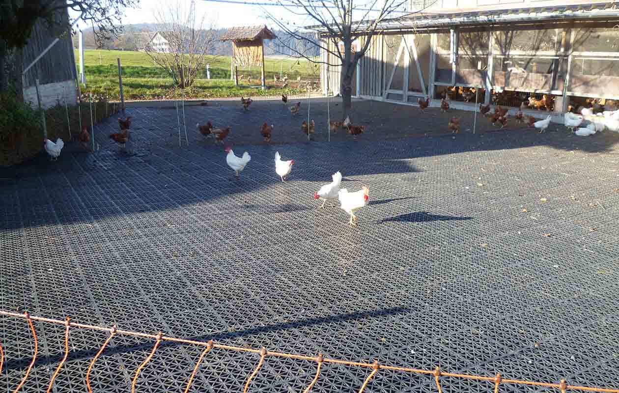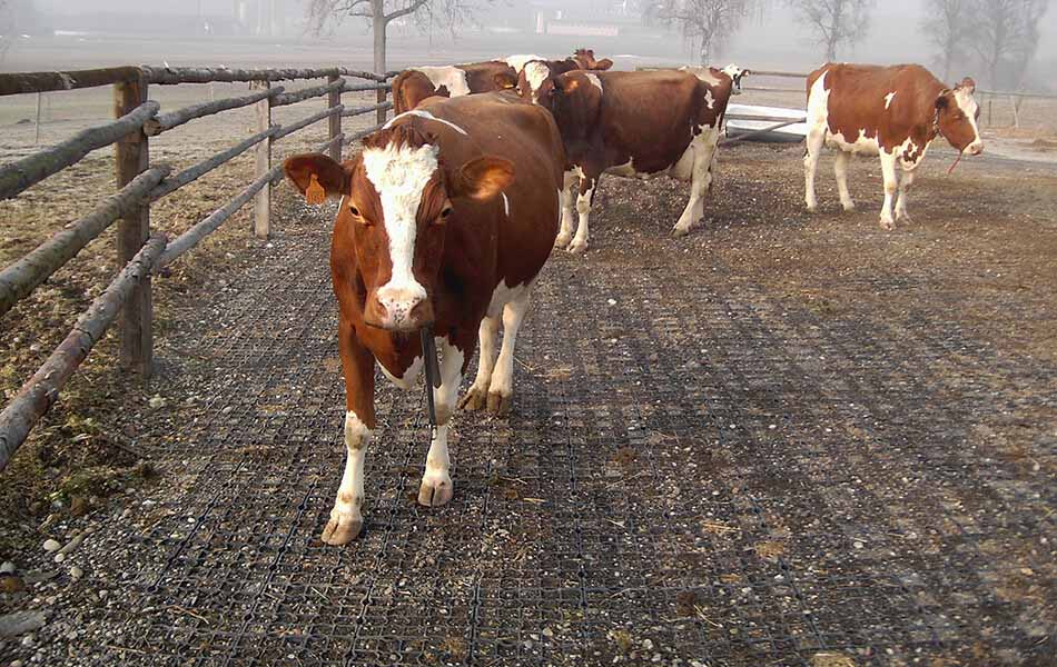 So zatrávňovacou dlažbou ECORASTER skoncujete s bahnom a blatom, postaráte sa o bezpečnú a zaťažiteľnú plochu. Spevnené plochy so zabudovanou drenážou v dlažbe odolajú vysokému zaťáženiu zvierat alebo poľnohospodárskou technikou a zachovajú prirodzenú funkciu zadržovania dažďa.