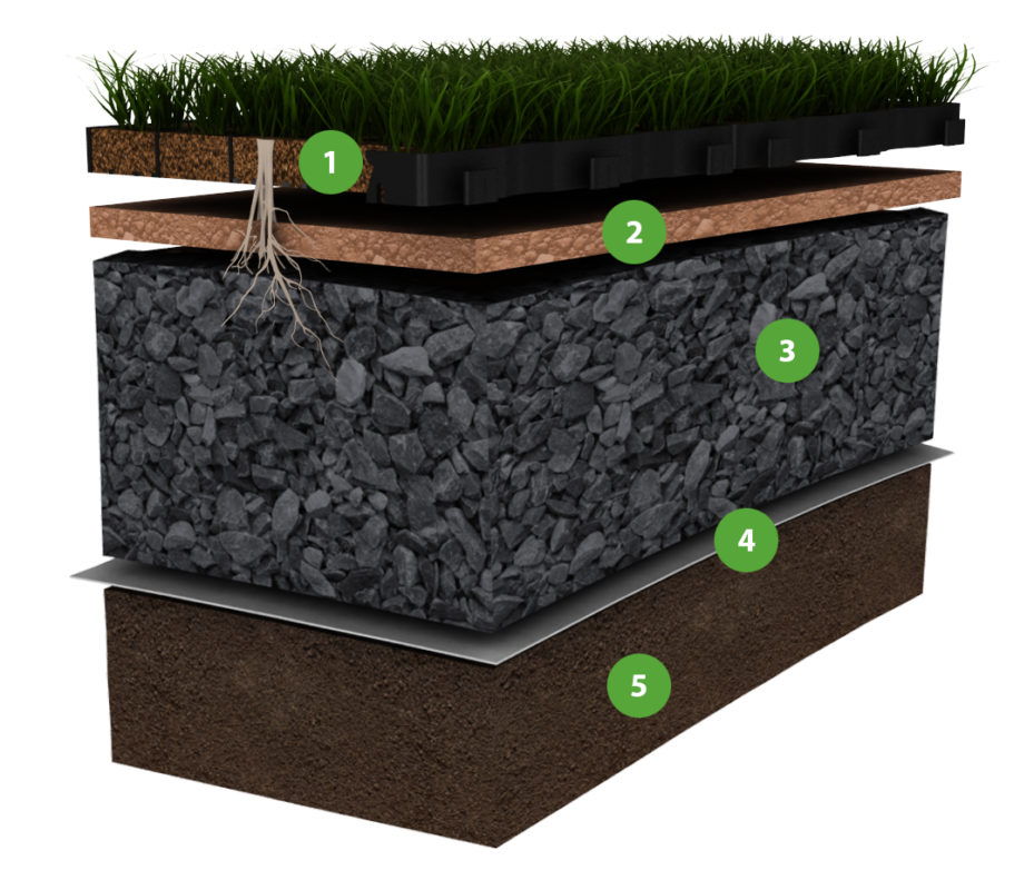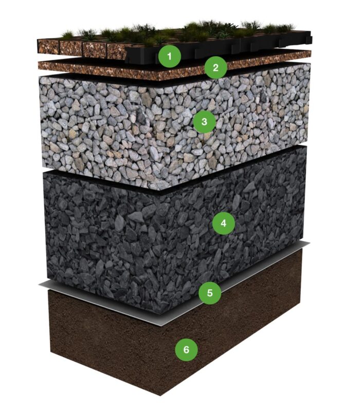 Podľa výplní, zaťaženia a použitia sa pre Váš projekt hodia rôzne typy zatrávňovacej dlažby s rôznymi nosnými vrstvami. Vďaka našim viac ako 20-ročným skúsenostiam v stavbách neuzavretých plôch Vám doporučujeme nasledujúce druhy podložia pri pokládke systému ECORASTER.