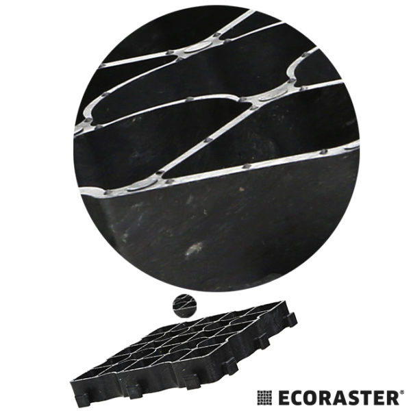 ECORASTER E50® je perfektným riešením pre vysoko namáhané priestory v inžinierskom staviteľstve, záhradách. Štrkom vyplnené skladovacie plochy, parkovisko s vysokou dopravou alebo trávnaté plochy pre požiarnu techniku pri ktorých je v prípade núdze základom úspechu ich dostatočná zaťažiteľnosť.
