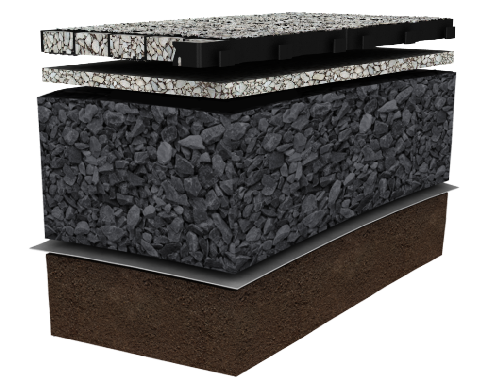 - Ekologická a ekonomická: Vyrobené zo 100 % recyklátu. Odpadá nutnosť budovať zložité kanalizácie – funguje ako prirodzená vsakovacia plocha.